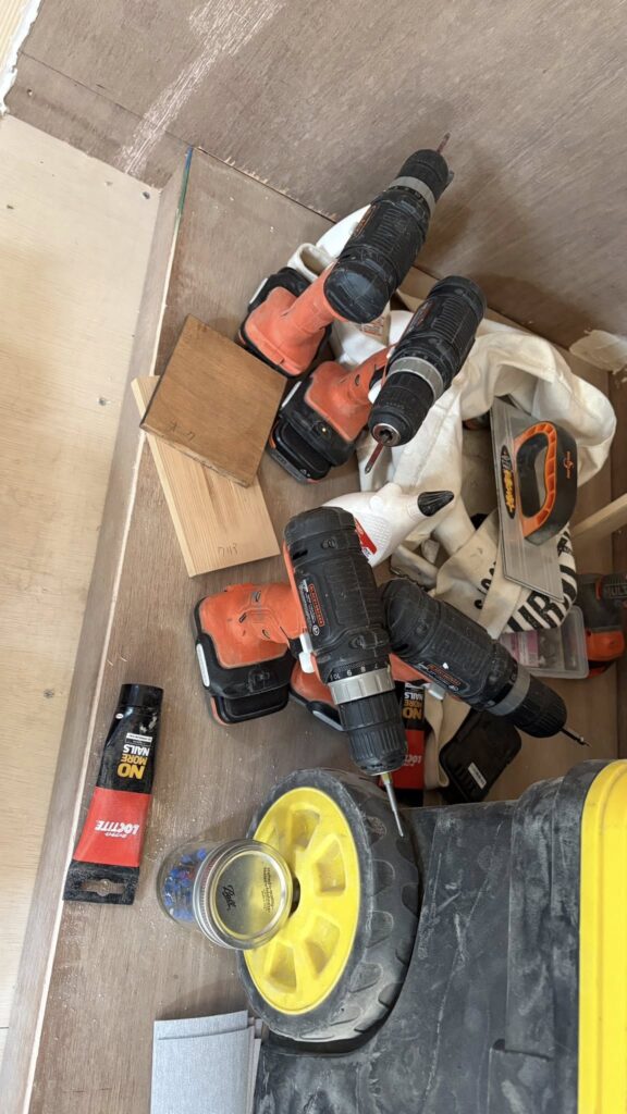 Grantさんのガレージでパイン材をカット