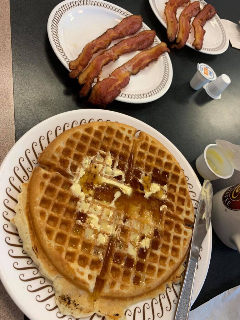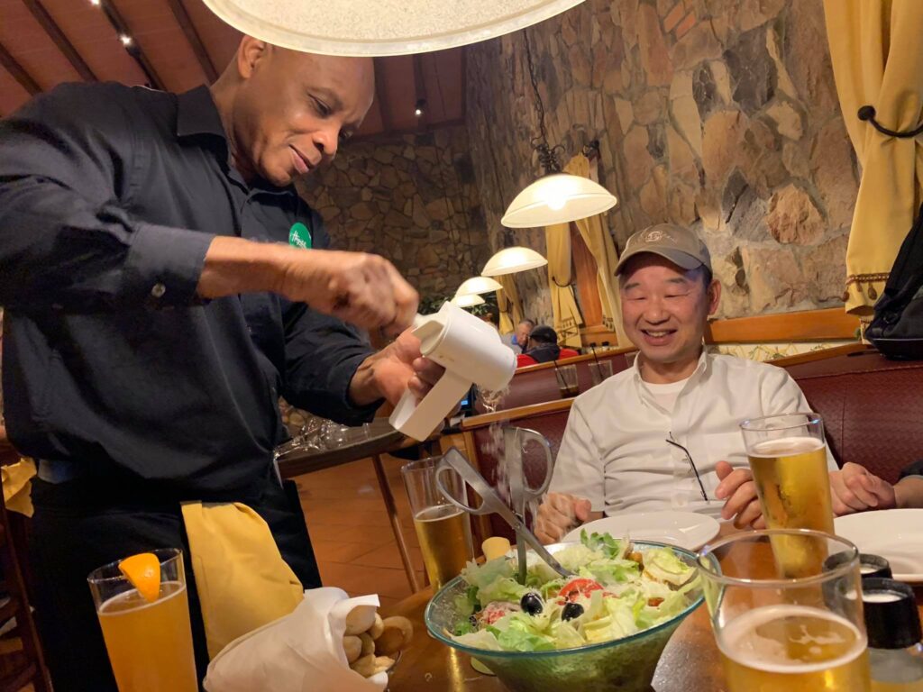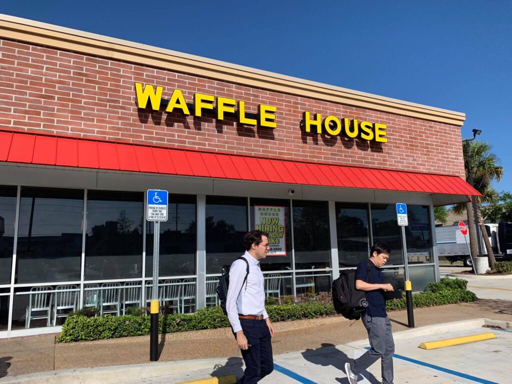 breakfastはローカルなWAFFLE HOUSEで、定番のワッフルです。1枚単位で注文出来るのが嬉しい。夕食はターナーさんと合流して、イタリアン。関西訛りで“ARIGATO“を連発するハイチ系ウェイターさんが楽しく盛り上げてくれます。今日も一日お疲れ様でした。