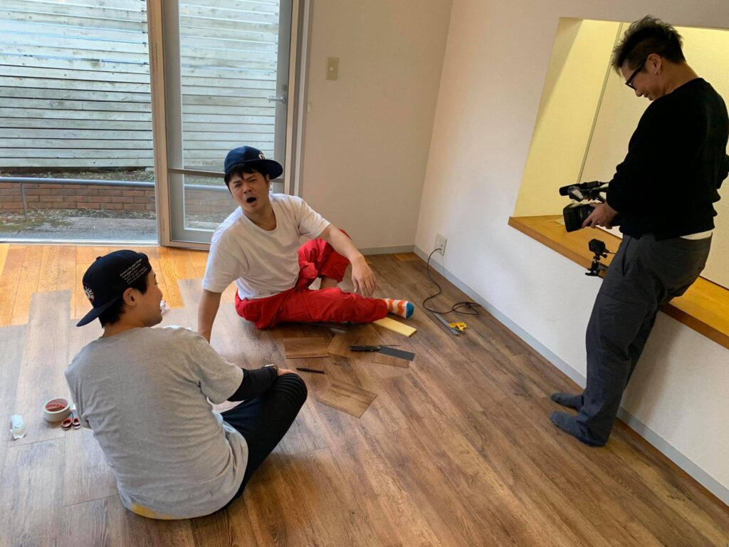 Posted in メディア活動 佐田さんの新居で、床貼り作業中 Author: yamada yoshiteru Published Date: 25/12/2019 佐田さんの新居で、床貼り作業中。9時間で50平米の床全部貼り終わり。佐田さん追っかけのカメラも入って、楽しく賑やかに作業は進んでいます。今夜はmerry christmas! Author: yamada yoshiteru