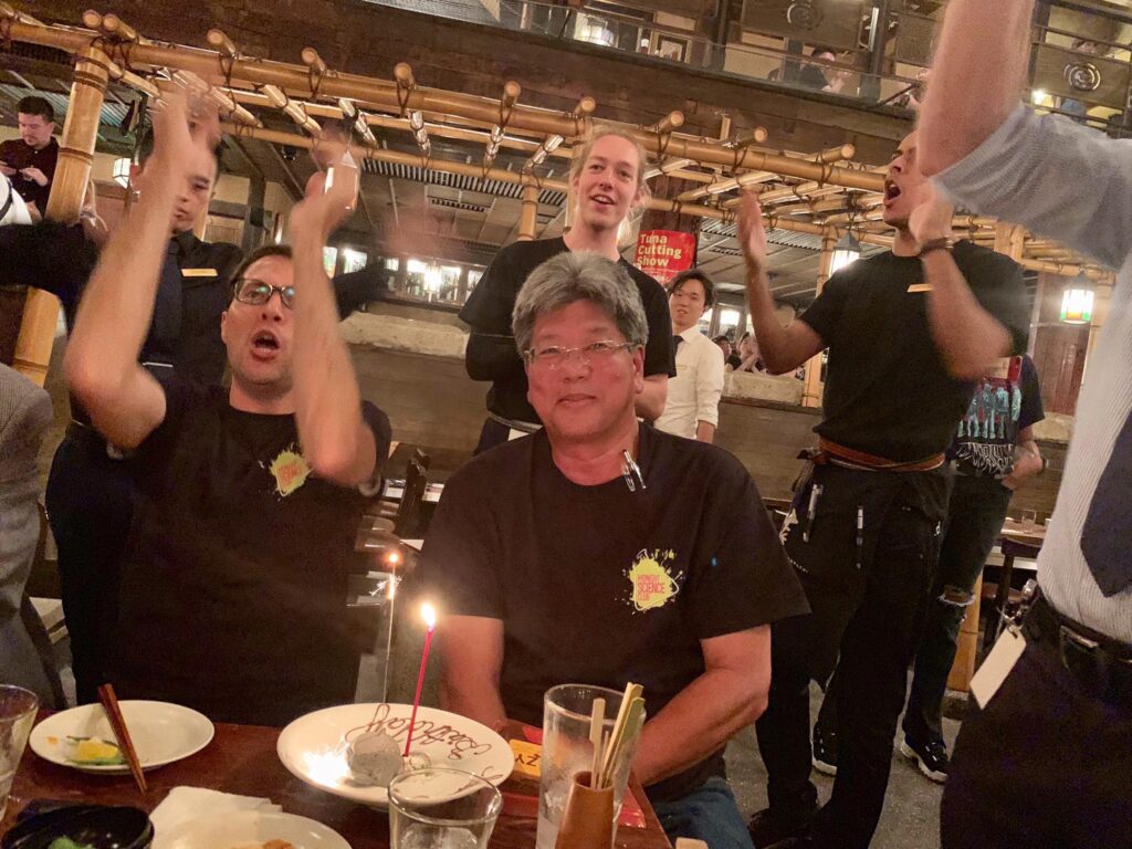 Kansasから来日のJakeさん、Carlaさん。Honoluluから参加のMiltonさん、Coryさん。そして、Japan team含めて初日の打ち上げです。お疲れ様! and、、Happy Birthday Milton!