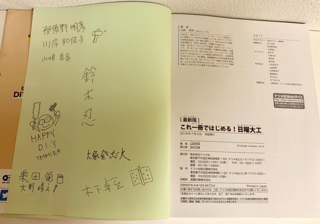 DIYムック本 「日曜大工」と「DIYでリフォーム&メンテナンス」制作打ち上げ。編集担当、撮影担当、DTP担当、撮影協力のお二人、皆さんとのチームワークで2冊の本は完成しました。3年間長かったけど、みんなの笑顔を頂いて、本当に感謝です。ありがとうございました。また、このチームで新たな挑戦をしたいですね。