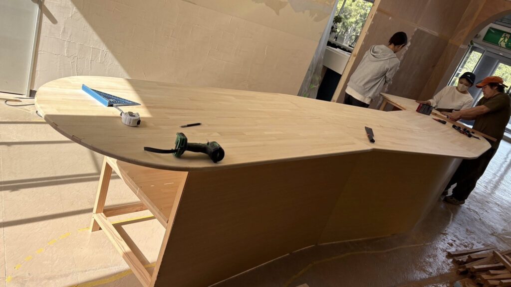 Posted in メディア活動 おっきなカウンターと入り口のアーチ壁完成 Author: yamada yoshiteru Published Date: 08/04/2026 鹿児島DIYサポート終了! みんなでおっきなカウンターと入り口のアーチ壁完成です。この場所でcafeのオープンが楽しみです。お疲れ様!東京へ戻ります。 Author: yamada yoshiteru