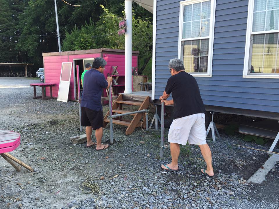 2011年に設置したトレーラーハウスは8月末に撤去が決まり、私達が作ったスロープを今回解体しました。間も無くここは元の空き地に戻ります。この6年間本当に貴重な体験と活動をさせて頂きました。ありがとうございました!!