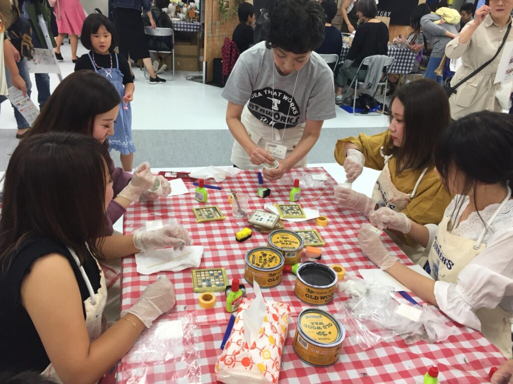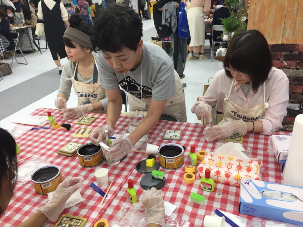第3回Art & Diy フェスタ 終了です。2日目は土肥ぽん太さん出演で、ステージとワークショップを盛り上げて頂きました。感謝!タイルコースターワークショップも大人気です。ぽん太さんが若い頃にタイル職人だったと聞いてタイルネタはぴったりでした。ターナーの皆さんお疲れ様でした!荷物はDewaltのBOXで東京へ発送。明日は、幕張メッセカートラjapan会場でウッドスピーカーのワークショップお手伝いしています。佐田さんとタケトさんが講師です。遊びに来てください。