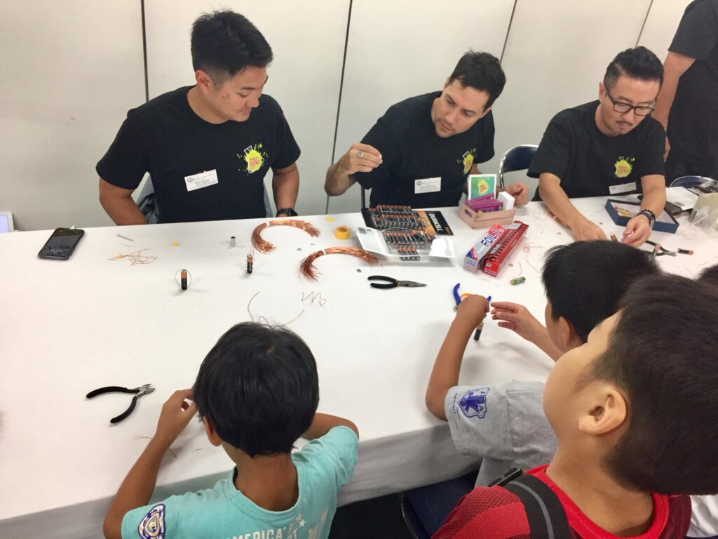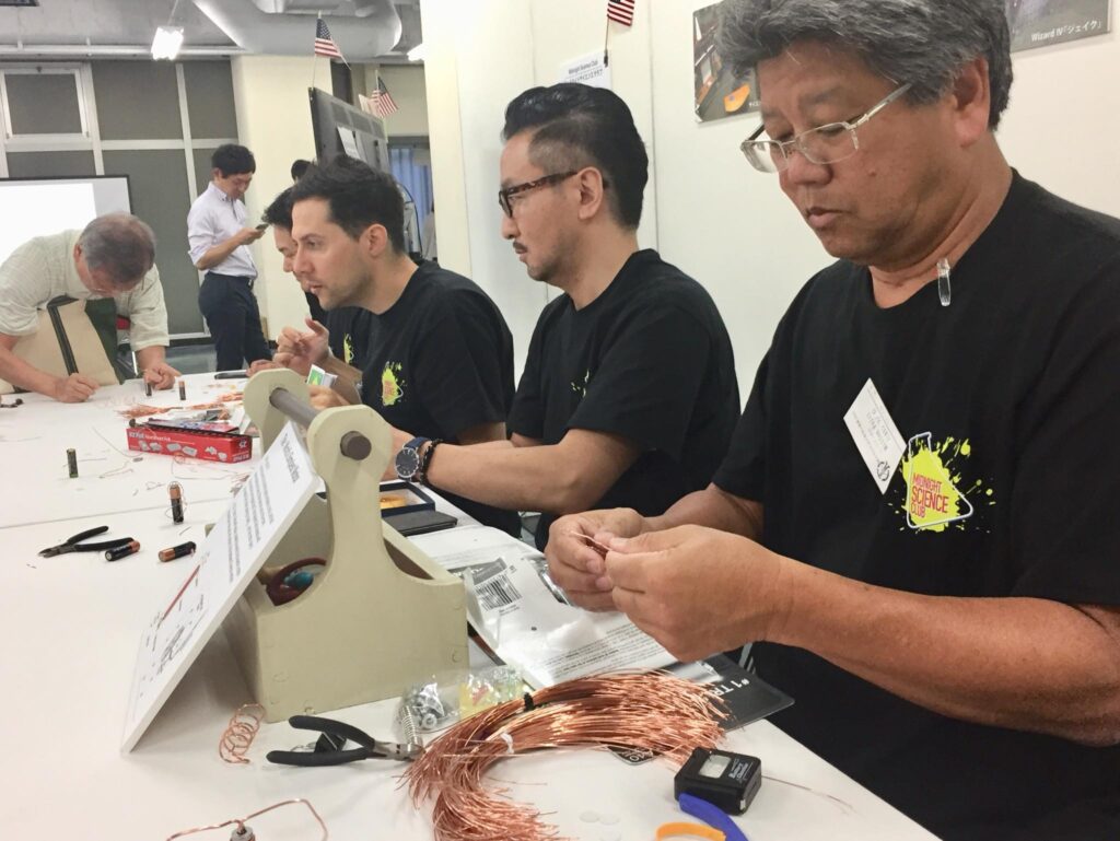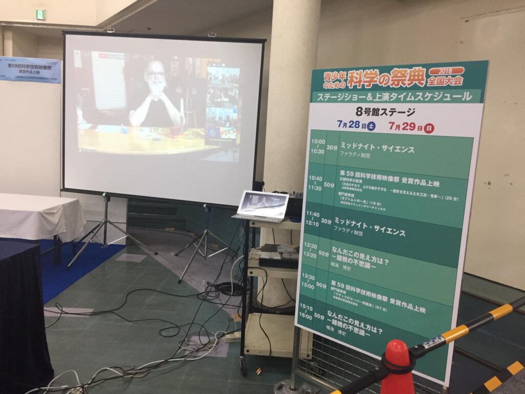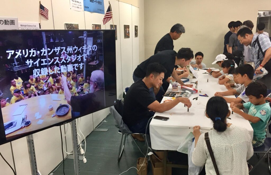 科学技術館、科学の祭典全国大会、初日終了です。台風の影響で15時閉館ですが、沢山の子供達と大人の方も参加で、用意した2日分の材料を一部補充しています。カンザスとのLIVE中継もトラブル無く1部、2部終了でホッとしました。館長の野依さんも座って見て下さって感激です。明日も10時オープンで、ハワイメンバーと一緒にお待ちしています!