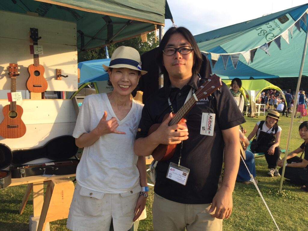 コールマンアウトドアリゾートパーク、もうすぐ日暮れ。ここち良い風が吹いてます。今日が最終日、20時までまだやってますよ。shigekoさんは思い切ってウクレレを買う!私はkamakaのTシャツを買う!これでハワイへ!ワークショップ終了したので取り敢えずお疲れ様。