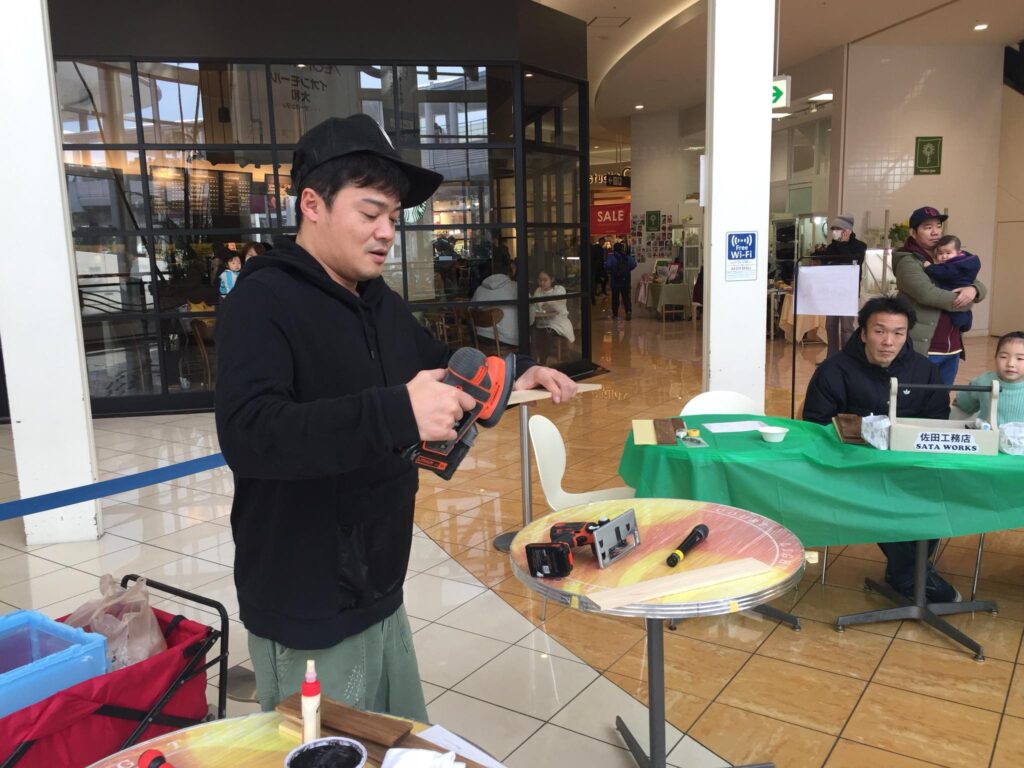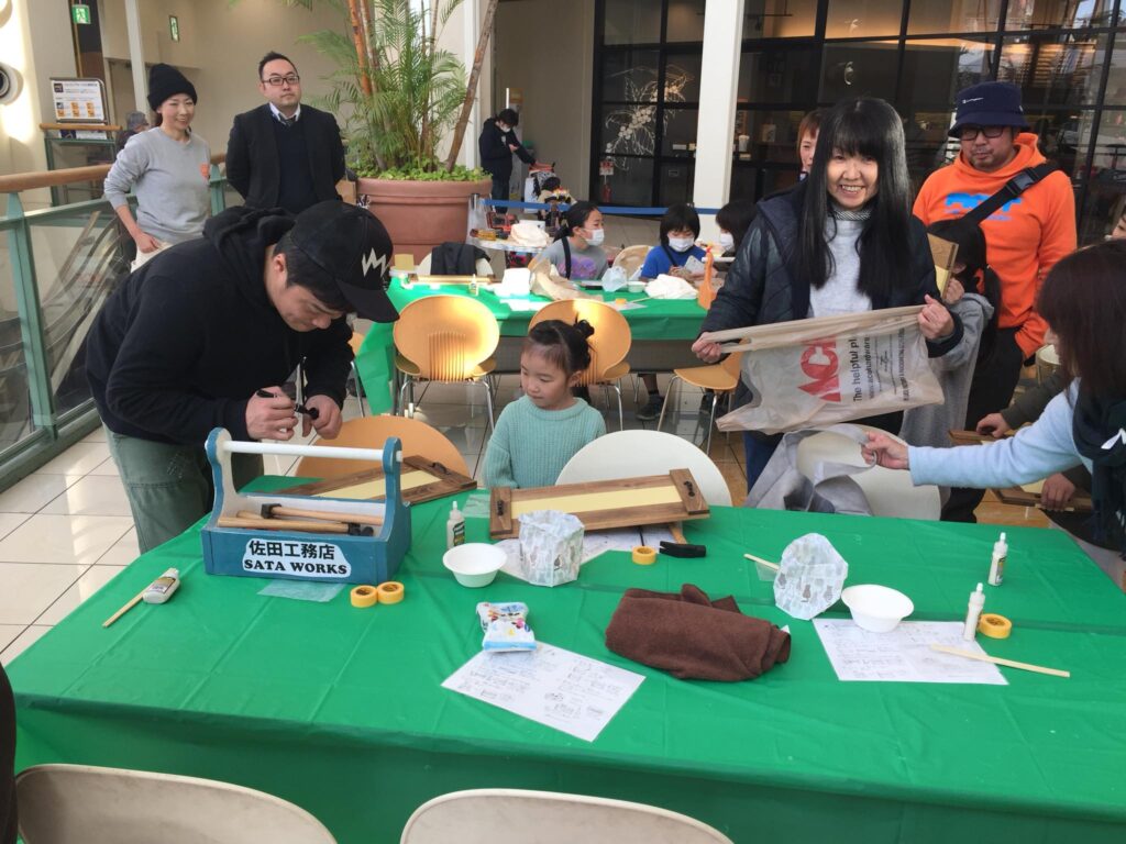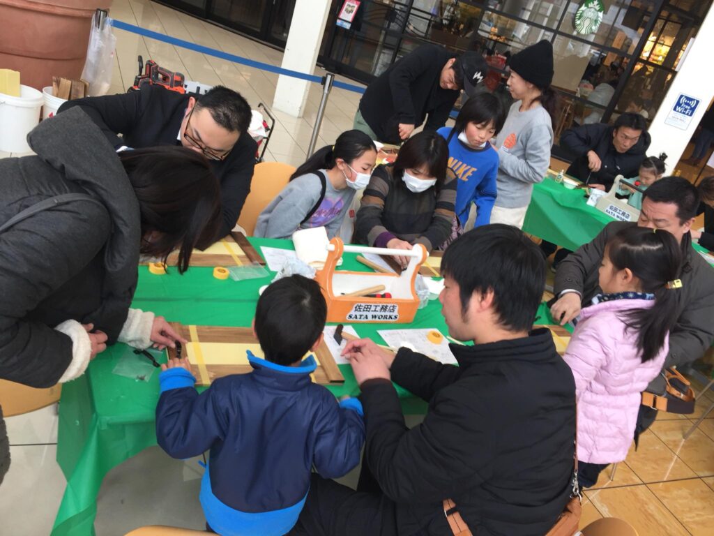Posted in メディア活動 佐田工務店 棟梁 佐田さん講師の木工ワークショップ Author: yamada yoshiteru Published Date: 28/01/2018 イオンモール大和 午後の部、佐田工務店 棟梁 佐田さん講師の木工ワークショップ大成功!満席でした。今年は佐田工務店のワークショップ活動を沢山開催しますので、是非お声がけください。皆さん、お疲れ様! Author: yamada yoshiteru