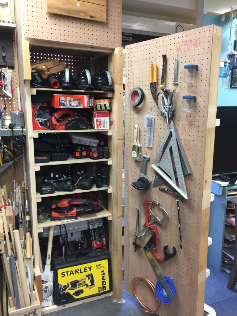 Posted in 工房活動 工具置き場をリニューアル Author: yamada yoshiteru Published Date: 29/12/2017 一年の締めは工具置き場をリニューアル、収納力アップで綺麗に並べることができました。作業場所がキレイになると無性に作品が作りたくなる。。。大人の木工教室のネタ考えます。 Author: yamada yoshiteru