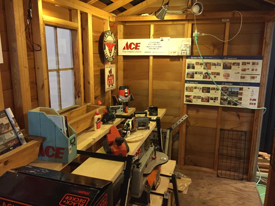 DIY ショー準備で会場にいます。海藤さんと再会! 後ろのガレージに私の工具を展示しました。ドゥーパ!ランドの中です。ドゥーパ編中長も白井さんもいますよ。遊びに来てください。明日、私はteam Omomoの取材で会場を歩いてます。