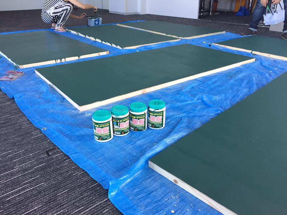 この展示スペースに設置する大きな黒板を作りました。25日から公開です。お近くに行く方は是非メッセージを黒板に書いてください! よろしくお願いします!