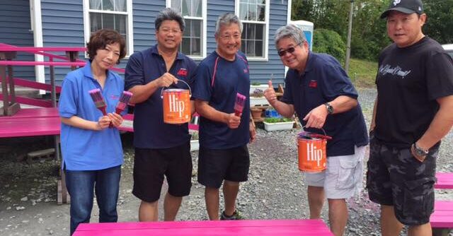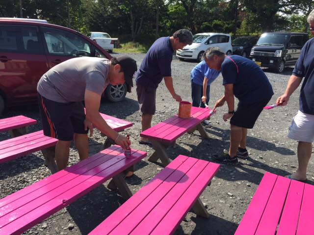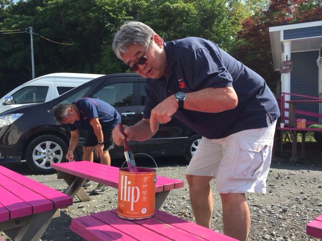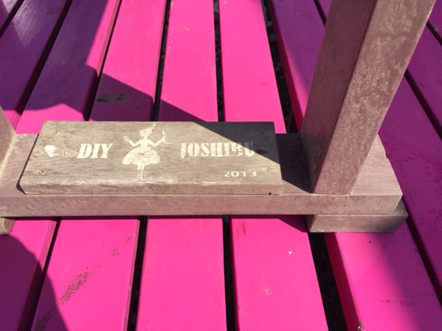 最後のミッションはhappy pinkの塗り替えです。ベンチ20個&テーブル、みんなhappyになりました。2013年diy女子部の支援プレートは年月を感じる風合いに成っていますが今もしっかりと残っています。小さな絆がある限りここにはいつまでも戻って来られます。感謝