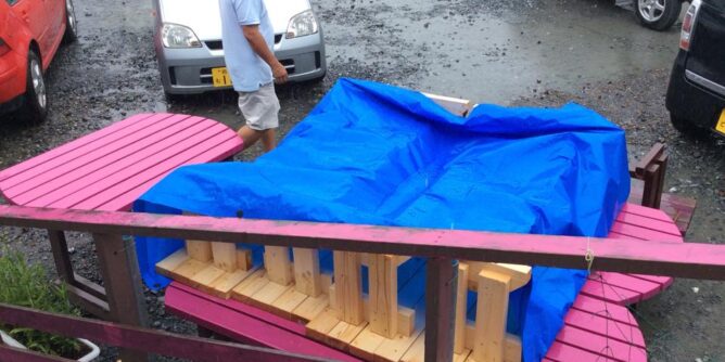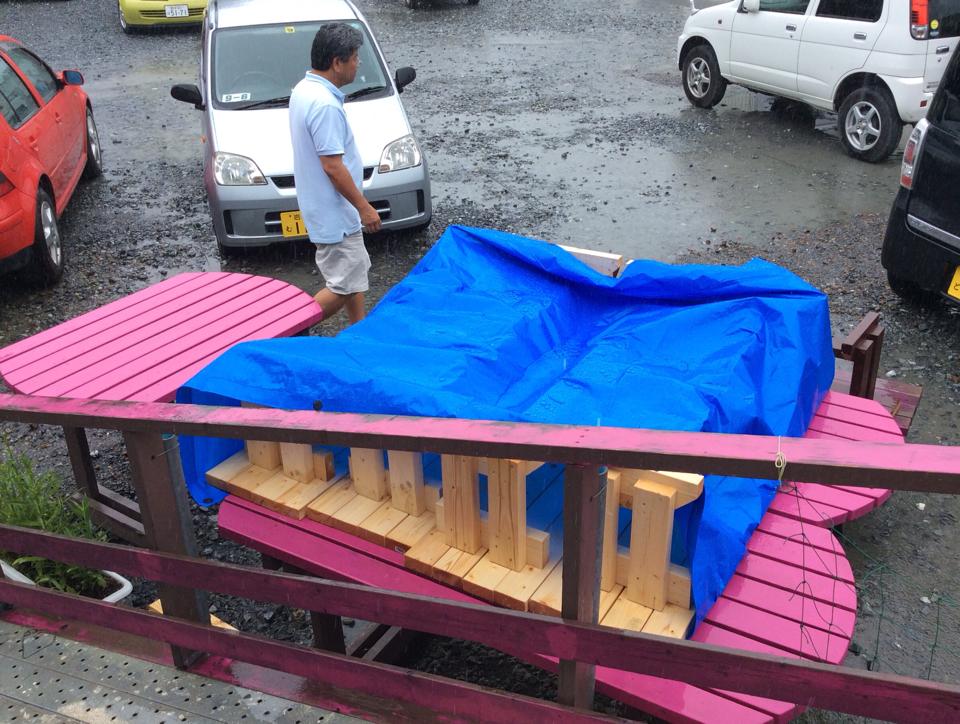 Posted in Team Hawaii 朝から雨です Author: yamada yoshiteru Published Date: 10/08/2014 朝から雨です。ベンチ5台は昨日完成していますが、残念ながらペイントはできません。仮設の皆さんが後日塗ってくれることになりました。 Author: yamada yoshiteru