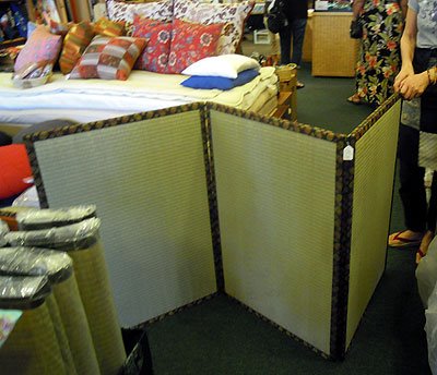 畳の屏風では無く、床に敷きます。収納が便利になるように折りたたみになっています。畳に厚みは、日本の普通の半分くらいかな。人気のアイテムのようです。