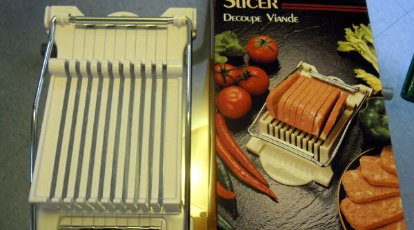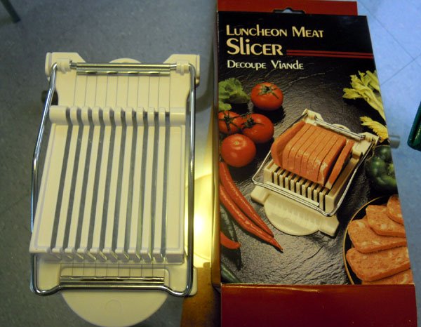 SPAMカッターも見つけました。これでSPAMの厚さで争いは起こらないかも。