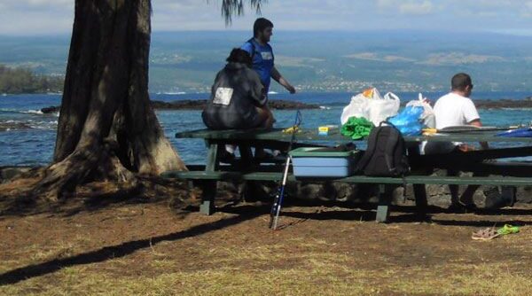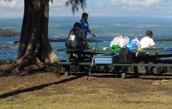 Hilo Bay朝の散歩で、釣り竿発見!ここは釣れるのかな?