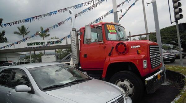 Posted in Hawaii Life 近くの中古車販売店で Author: yamada yoshiteru Published Date: 11/02/2012 近くの中古車販売店で、、、乗用車の隣にコンテナを引っ張ってるトラックが普通に売られていた。No.5995はいくらなんだろう。 Author: yamada yoshiteru