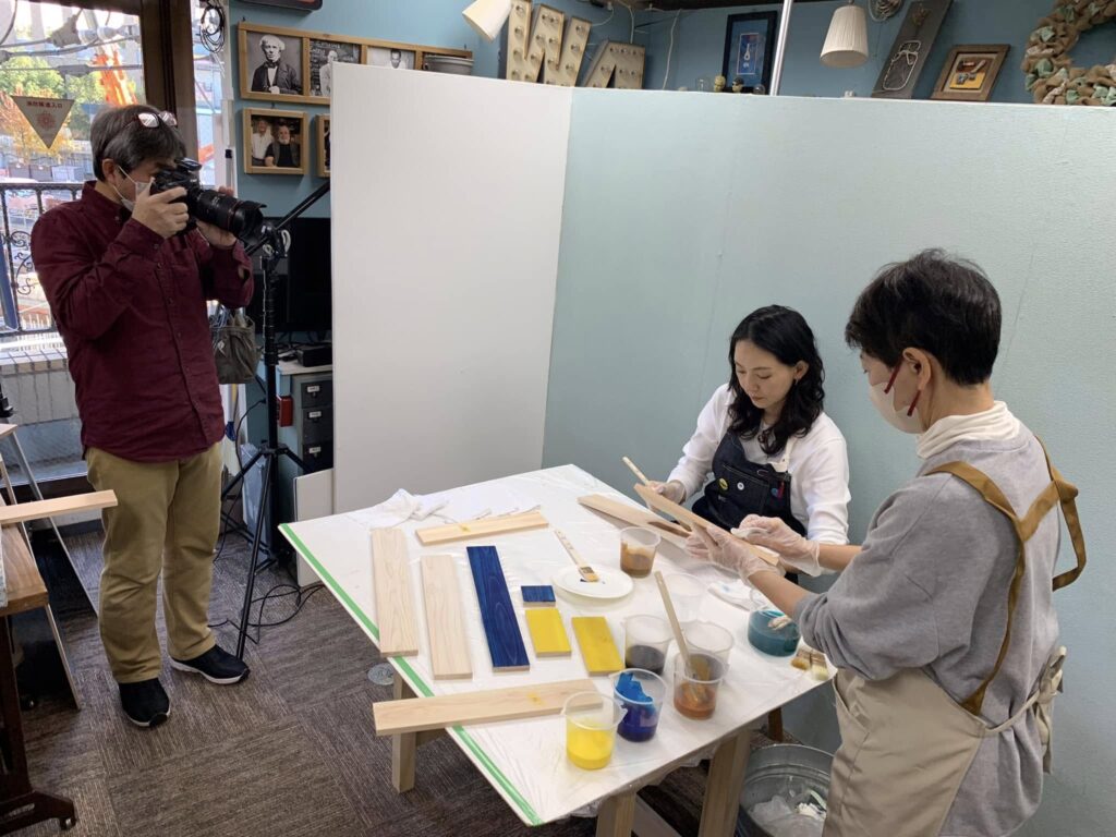DIY本撮影中、真帆さんから提供して頂いたミシン台に合うモザイクテーブルを作っています。真帆さんの制作で本に収録しますので、発売日が更に楽しみになりますね。お疲れ様でした!クリスマスを飾るオーナメントもまた一つ増えました。